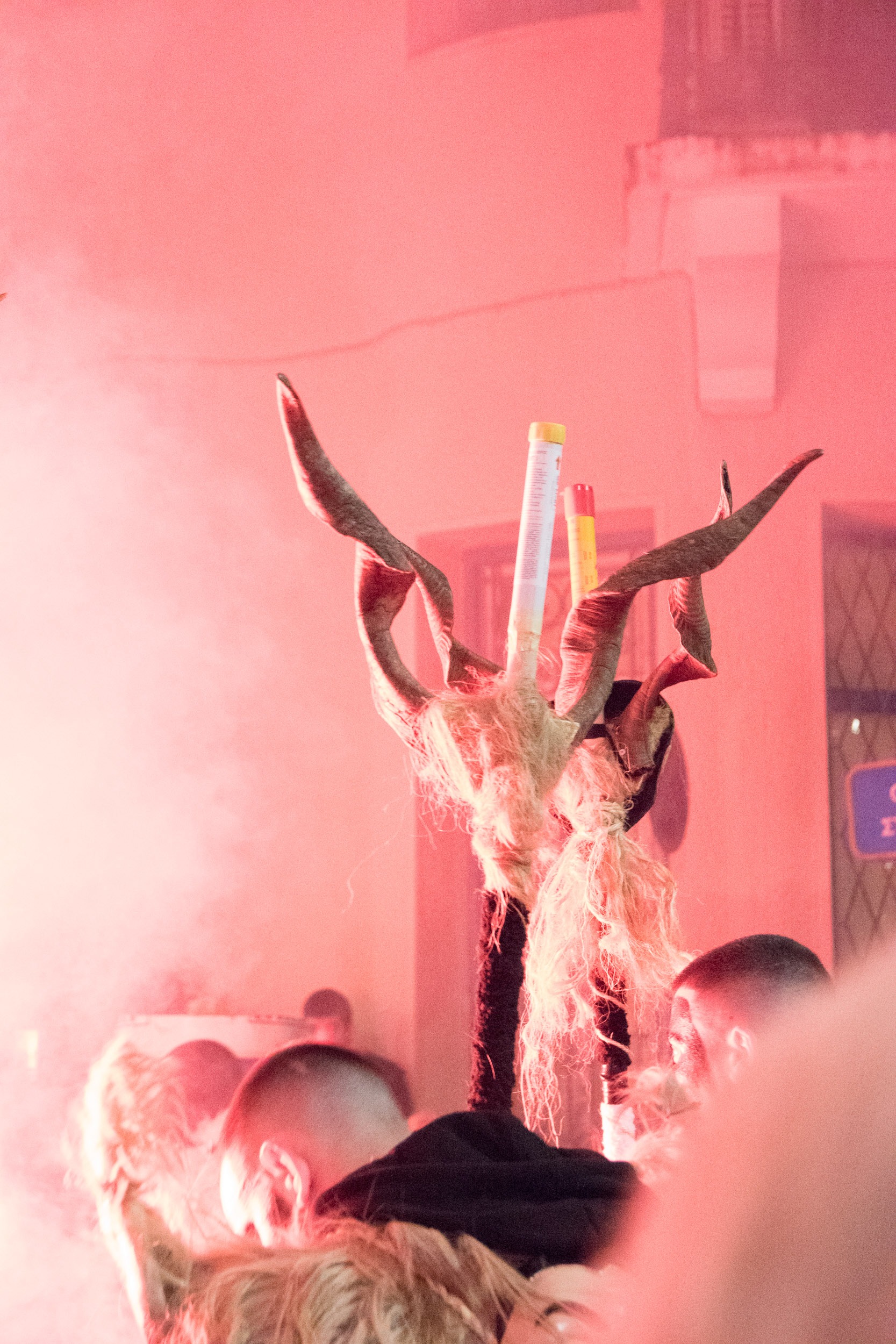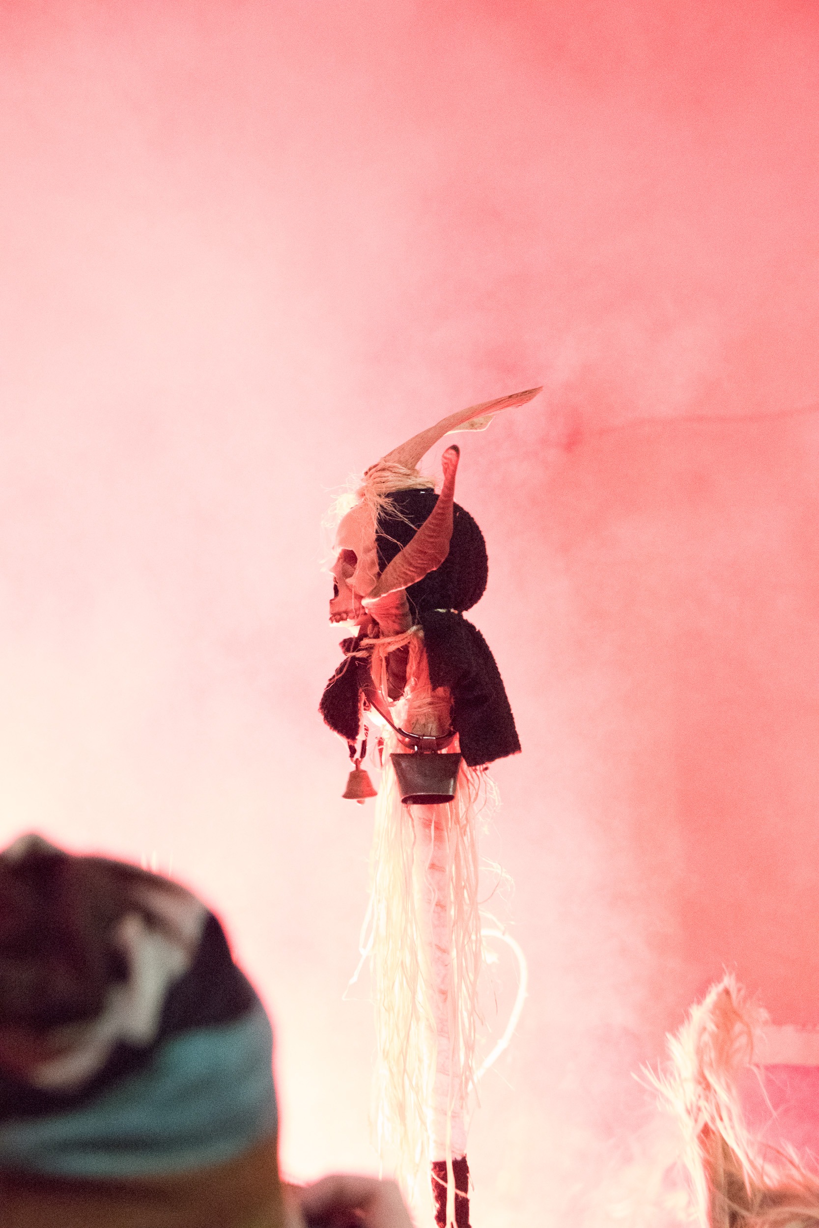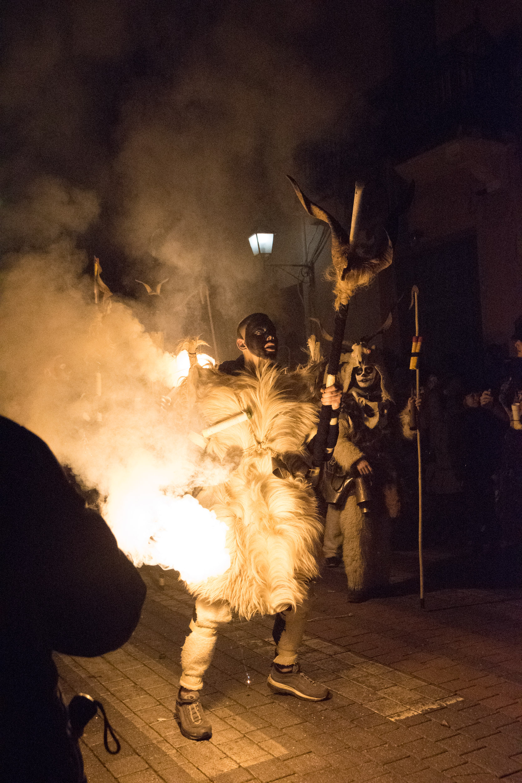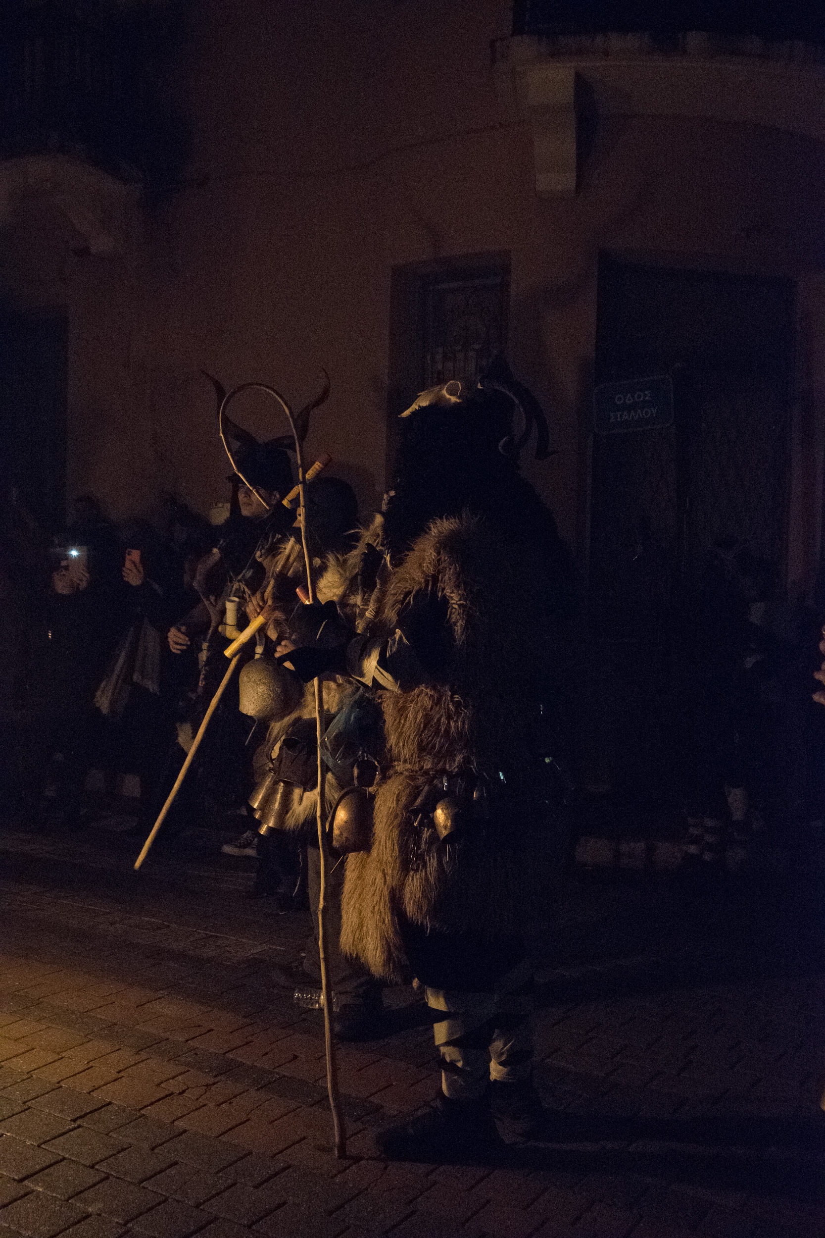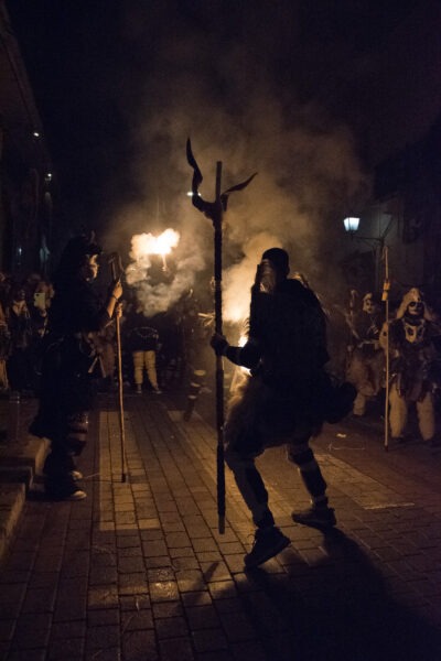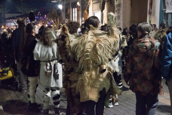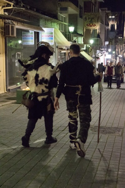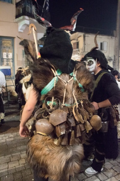 Επίσης, πολύ ενδιαφέρουσα πληροφορία είναι το γεγονός ότι όλο αυτό το γεγονός στήνεται από την κοινότητα της πόλης, όπου μικροί και μεγάλοι συμμετέχουν με πάθος και πολλή φαντασία. Λειτουργεί «ΕΙΚΑΣΤΙΚΟ ΕΡΓΑΣΤΗΡΙ» (σημείωσέ το αυτό σε παρακαλώ) στο οποίο ΦΤΙΑΧΝΟΥΝ τα Στοιχειά, τα οποία είναι ΥΠΕΡΠΑΡΑΓΩΓΗ. Η δουλειά που κάνουν είναι απίστευτη, πρέπει να το δεις από κοντά αυτό! Τα δε κοστούμια των κουδουνοφόρων είναι άκρως εντυπωσιακά, αποτελούνται από δέρματα, κέρατα, προβιές, κουδούνια και φυσικά το ανάλογο βάψιμο! Το ακόμα πιο ενδιαφέρον είναι ότι κι εσύ μπορείς να συμμετέχεις σε αυτό, να νοικιάσεις στολή, να βαφτείς και να συνοδεύσεις τα Στοιχειά στην μάχη τους μαζί με τους υπόλοιπους κουδουνοφόρους!
