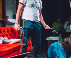 Ο ρόλος μου στην τελευταία παράσταση που έπαιξα, « Ερκουλίν Μπαρμπέν: οι αναμνήσεις ενός ερμαφρόδιτου» στο Μπενσουσάν Χαν σε διασκευή και σκηνοθετική επιμέλεια του Δαμιανού Κωνσταντινίδη. Ο Δαμιανός πήρε τα απομνημονεύματα ενός Intersex ατόμου που έζησε στην Γαλλία τον 19ο αιώνα και το έκανε θεατρικό σε μορφή ενός περίεργου ποιήματος, όπου τρείς ηθοποιοί αφηγούμασταν έναν χαρακτήρα. Πολύ δυνατή παράσταση για ένα θέμα που δεν είχα ξανα-αγγίξει θεατρικά αν και από μικρό με ενδιέφερε η εξερεύνηση του φύλου και ποια είναι τα όρια αυτού. Μεγάλωσα και σε επαρχία. Στην Κομοτηνή. Και όπως καταλαβαίνεις τα όρια ήταν στενά. Ποτέ δε είχα καλύψει μέσα μου, όμως, αυτή την απόσταση «άντρας-γυναίκα». Ξαφνικά γνωρίσαμε κάτι που βρίσκεται ενδιάμεσα: ένα ερμαφρόδιτο άτομο. Άρχισα να ψάχνω και μελετάω γι αυτό. Μέσω της παράστασης κατάφερα να καταλάβω και να καλύψω κάποιες αποστάσεις κι έτσι μου ήταν πάρα πολύ διασκεδαστική διαδικασία, τόσο κατά την διάρκεια όσο και μετά το τέλος της παράστασης. Κατάλαβα, επιτέλους, ένα φαινόμενο που η κοινωνία ονομάζει τοξική αρρενωπότητα και πόσες φορές το έχω συναντήσει ακόμη και σε πολύ δικούς μου ανθρώπους. Μόνο και μόνο που το αναγνώρισα στον εαυτό μου και στους άλλους, μπόρεσα να νιώσω πολύ πιο ελεύθερος σαν άνθρωπος. Πιστεύω πως όποιος αποκτήσει επίγνωση της μεταβλητότητας της φύσης του, μπορεί πραγματικά να νιώσει απελευθερωμένος. Και η κοινωνία έχει αρχίσει, ευτυχώς, να μιλάει πολύ πιο ανοιχτά και χωρίς ταμπού γι αυτά τα θέματα.